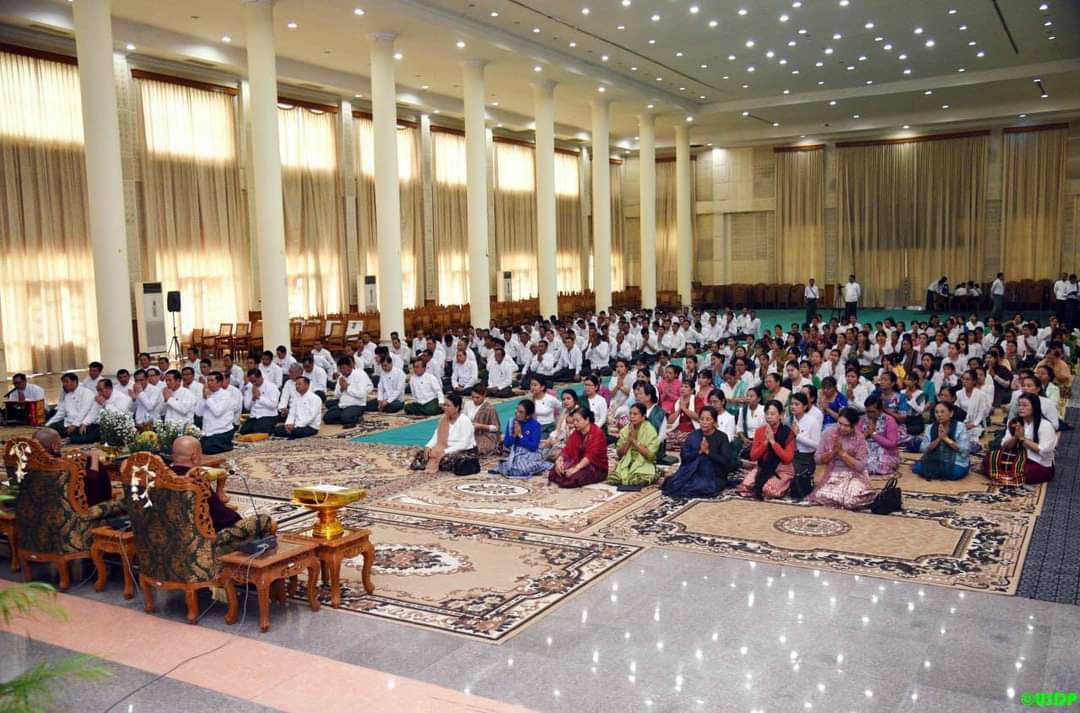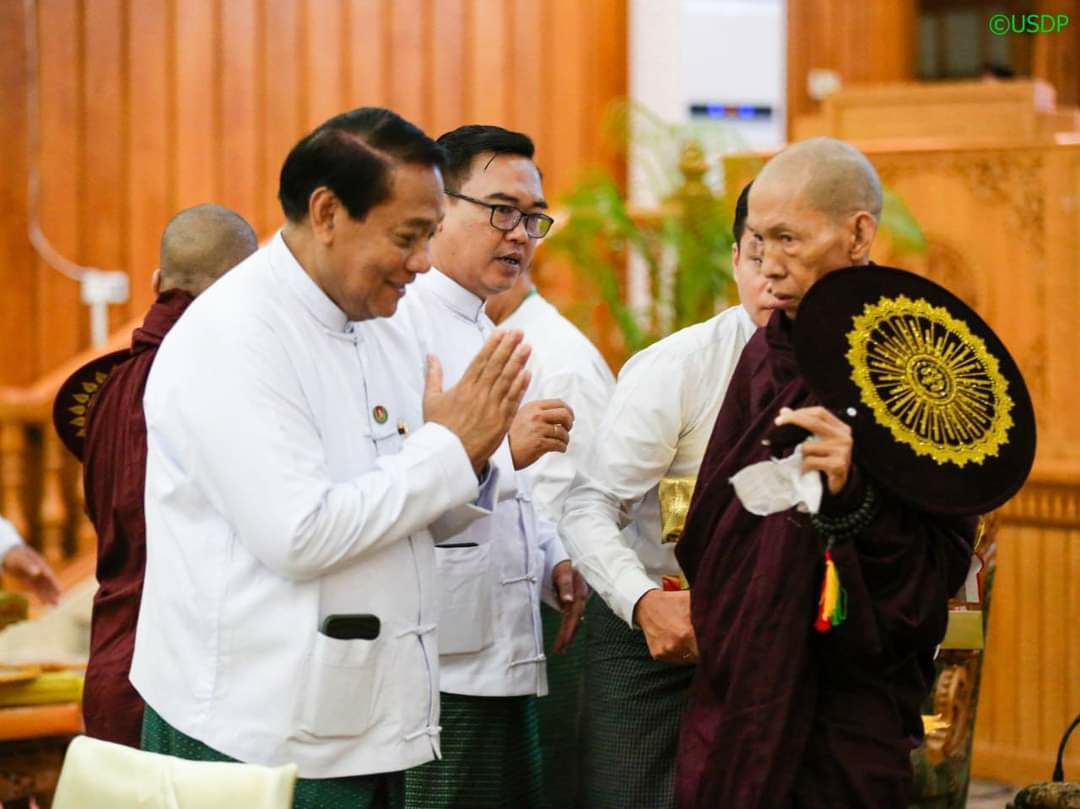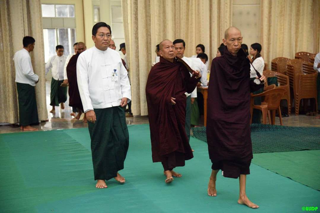 USDP ပါတီ၏ ဧကာဒသမ အကြိမ်မြောက် ဝါဆို သင်္ကန်းကပ်လှူပွဲအား စက်တင်ဘာ (၂) ရက် နံနက်ပိုင်းက နေပြည်တော်ရှိ ပါတီဌာနချုပ်၌ ကျင်းပရာ ပါဠိတက္ကသိုလ် မင်္ဂလာဇေယျုံ ပရိယတ္တိစာသင်တိုက် ပဓာန နာယက၊ အဂ္ဂမဟာ ပဏ္ဍိတ၊ အဂ္ဂမဟာသဒ္ဓမ ဇောတိကဓဇ ဘဒ္ဒန္တဝိမလဗုဒ္ဓိထံမှ USDP ပါတီ ဥက္ကဋ္ဌ ဦးခင်ရီနှင့် ဧည့်ပရိသတ်များက ငါးပါးသီလခံယူကာ ကြွရောက်တော်မူလာကြသည့် ဆရာတော်၊ သံဃာတော်များအား ဝါဆိုသင်္ကန်းများဆက်ကပ်လှူဒါန်းခဲ့ကြသည့် မြင်ကွင်းပုံရိပ်များကိုစုစည်းဖော်ပြလိုက်ရပါသည်။